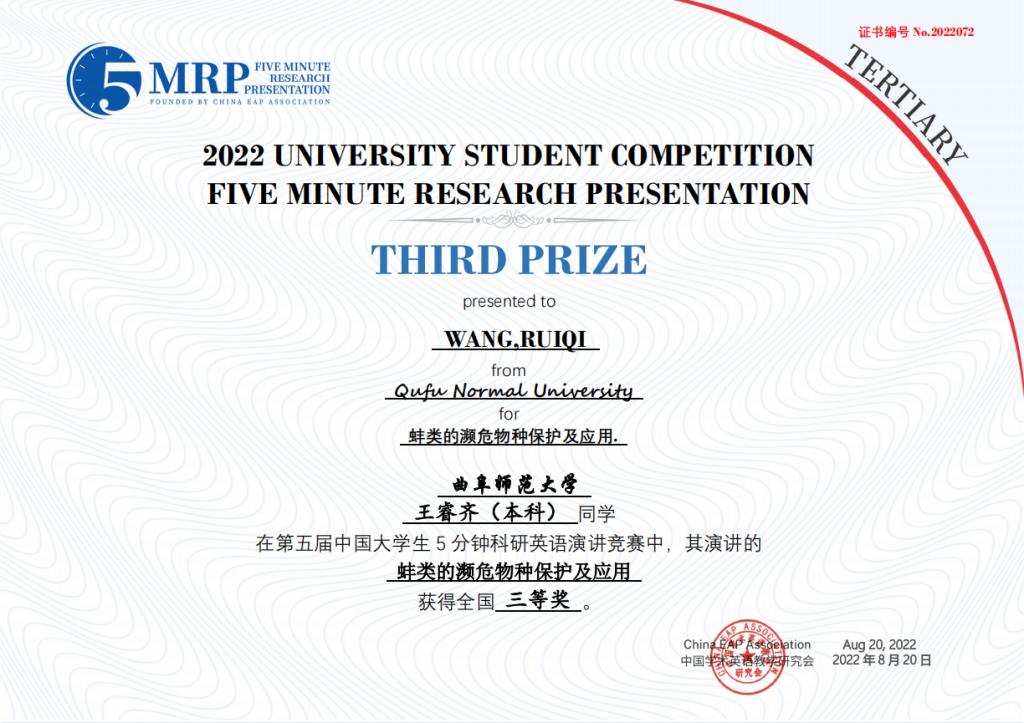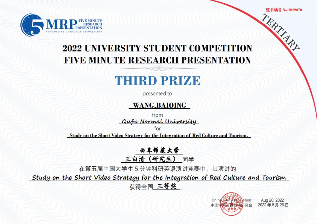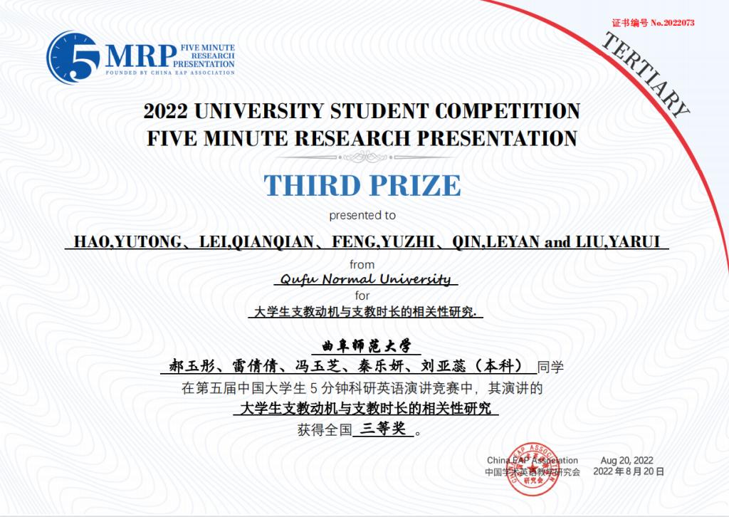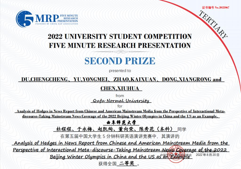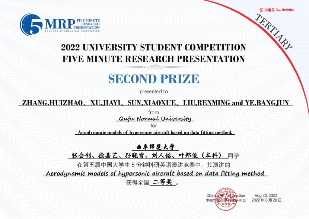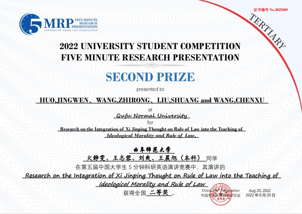 附2:第五届中国大学生五分钟科研英语演讲大赛斗地主 获奖团队获奖证书