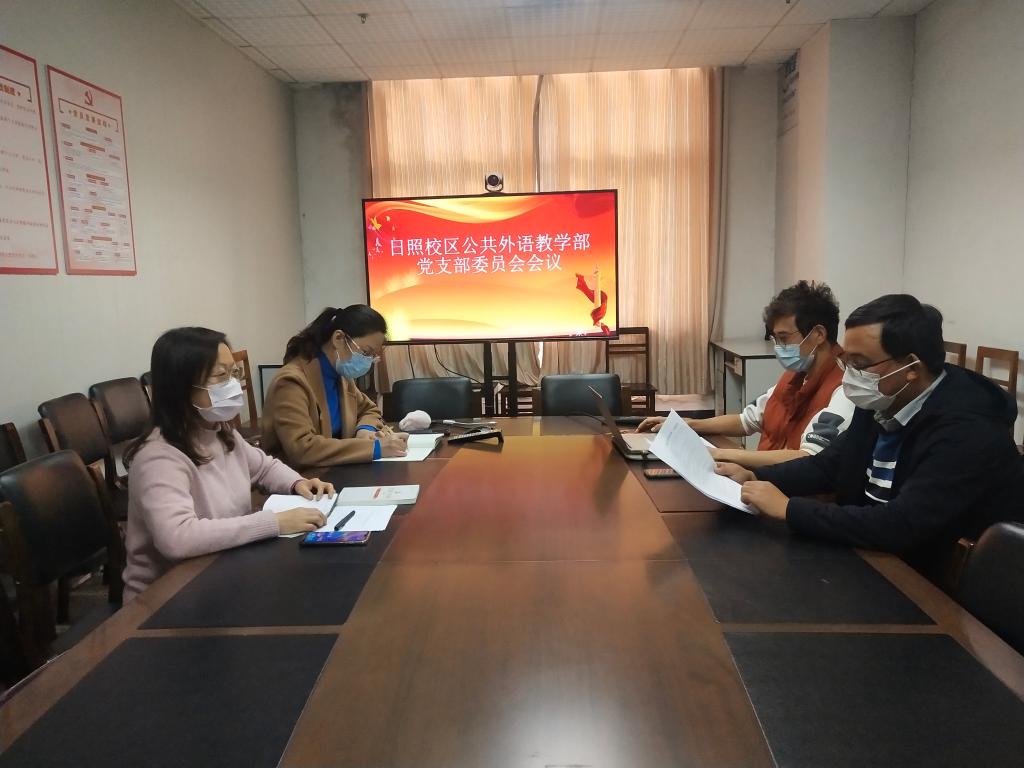 日照校区党支部在JC1002召开支部委员会会议。会议由支部书记杜庆凤主持,除一位在外访学的委员外,其它四位委员参加了会议。