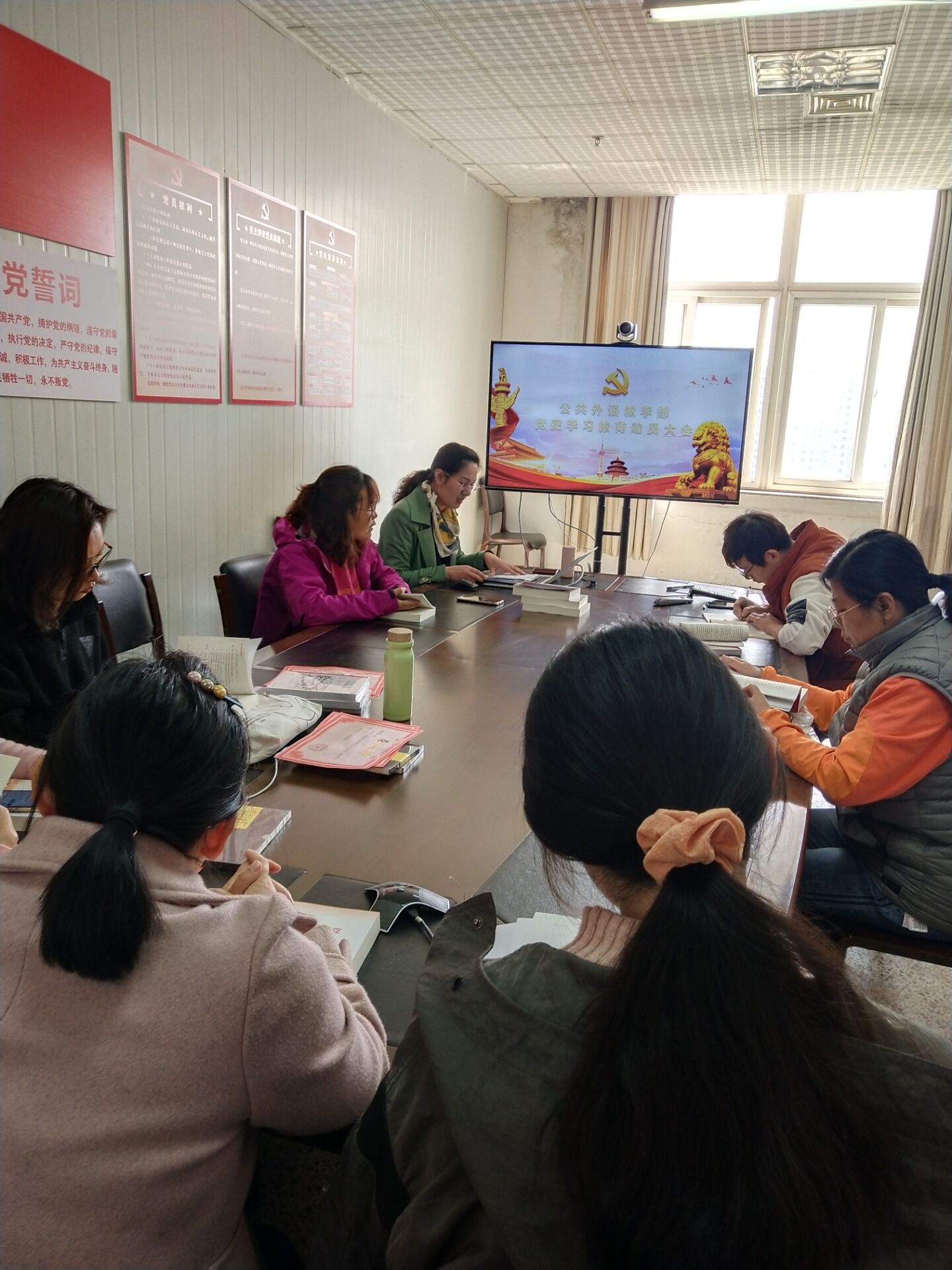 日照校区党支部在JC1002会议室召开党史学习教育动员大会,会议由支部书记张英主持。