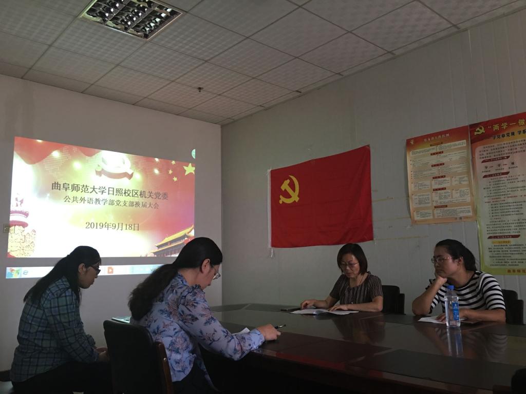 日照党支部换届选举大会在JC1002会议室举行。会议由张英同志主持,大会应到会党员19名,实到18名,其中有选举权与被选举权的党员16名。