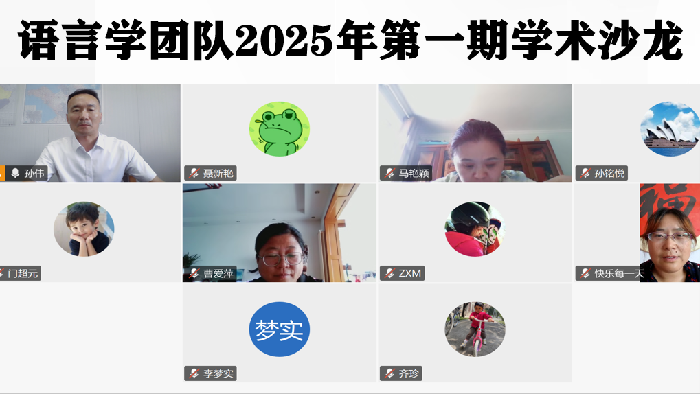 7月5日下午,斗地主 语言学研究团队通过腾讯会议形式成功举办2025年第一期学术沙龙。本期沙龙活动由团队负责人孙伟主持,曲阜和日照两校区的全体团队成员参加了本次学术交流。