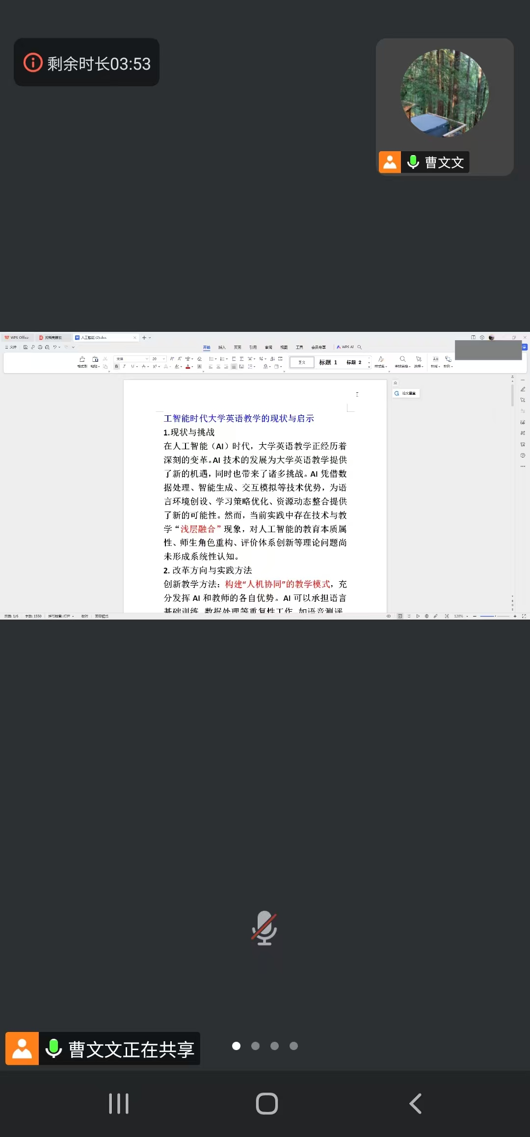 语言教学研究团队(日照)开展题为“AI辅助下科研论文写作”的研讨会,主要围绕科研进展、方向及AI学术应用方面展开。研讨会由曹文文主持。