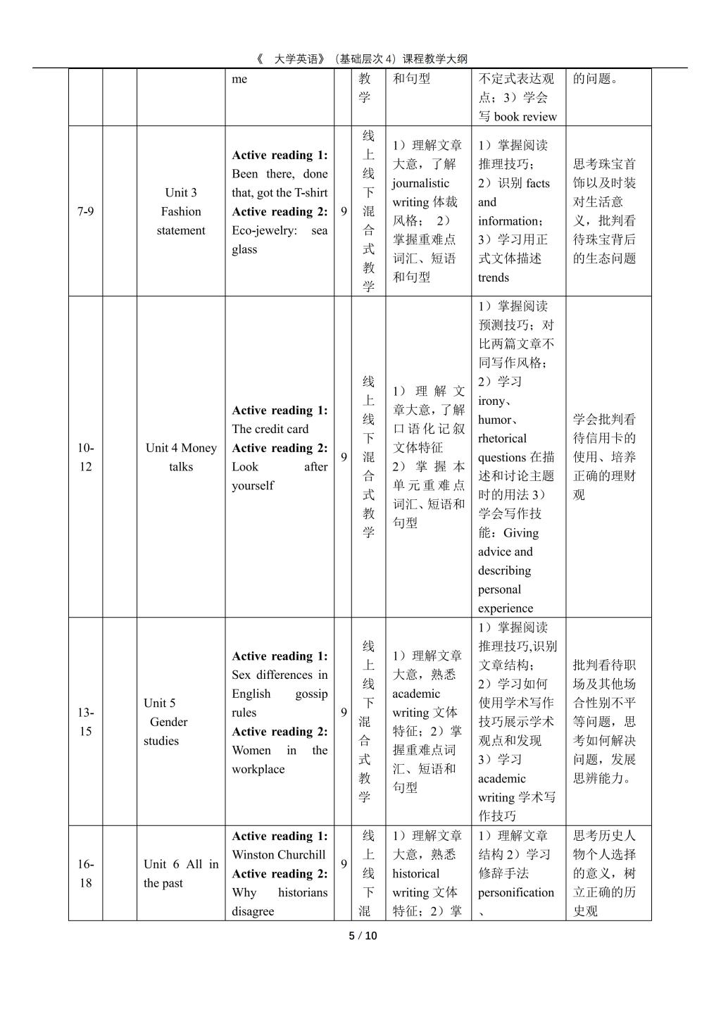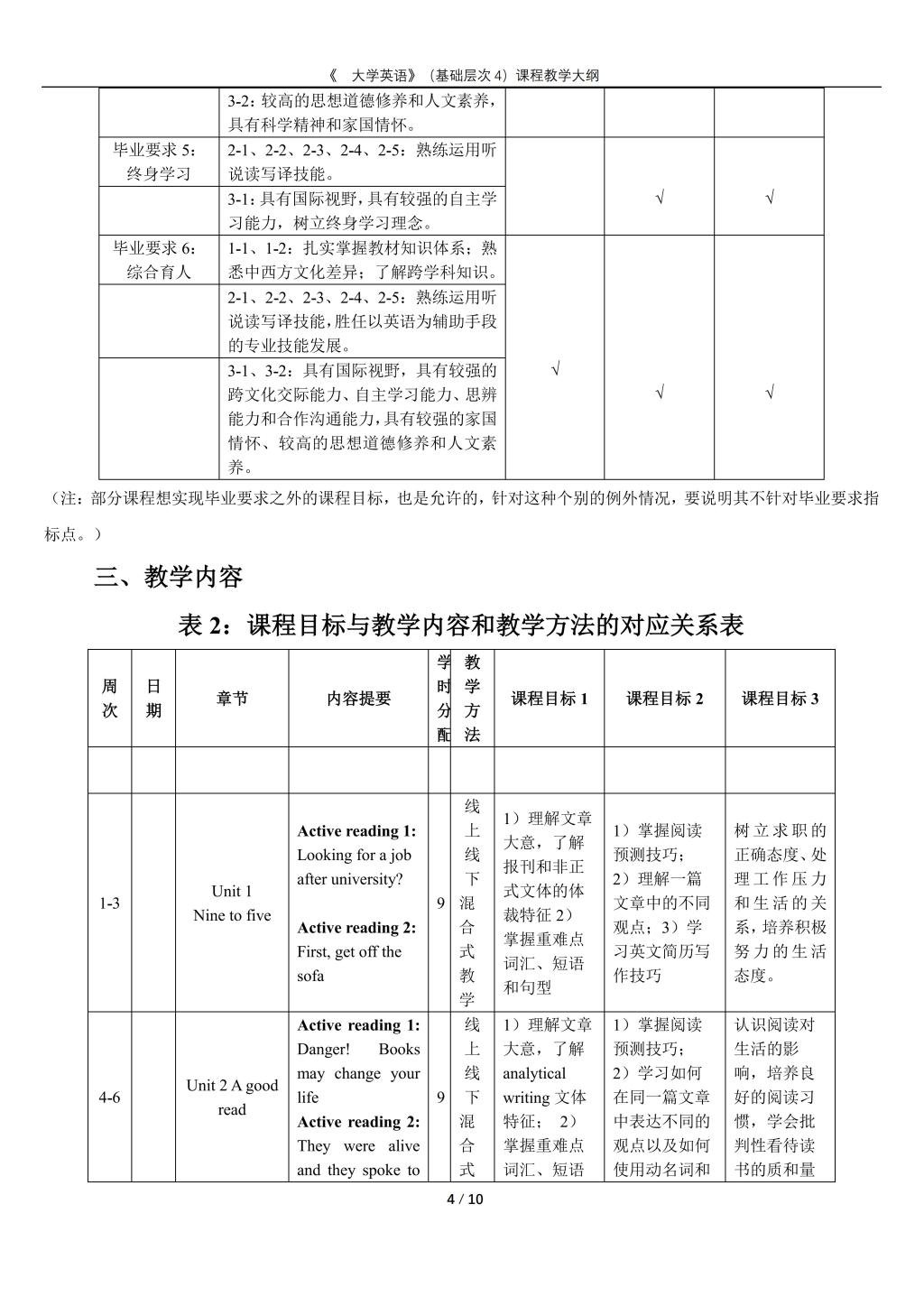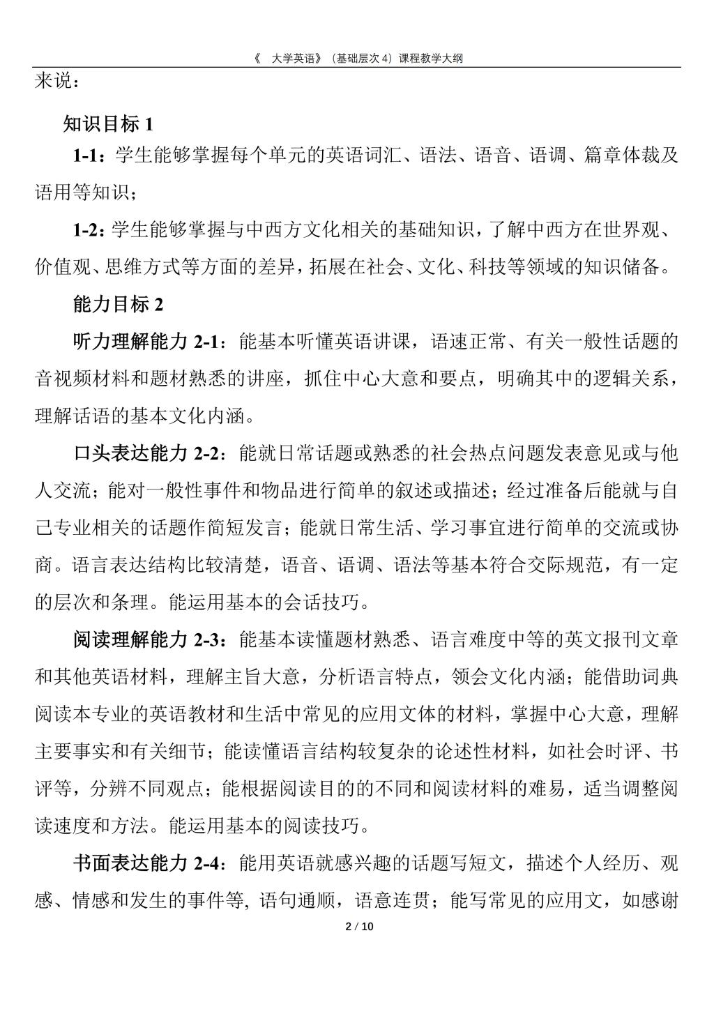 大学英语(普通类基础层次4)课程教学大纲(2022版)