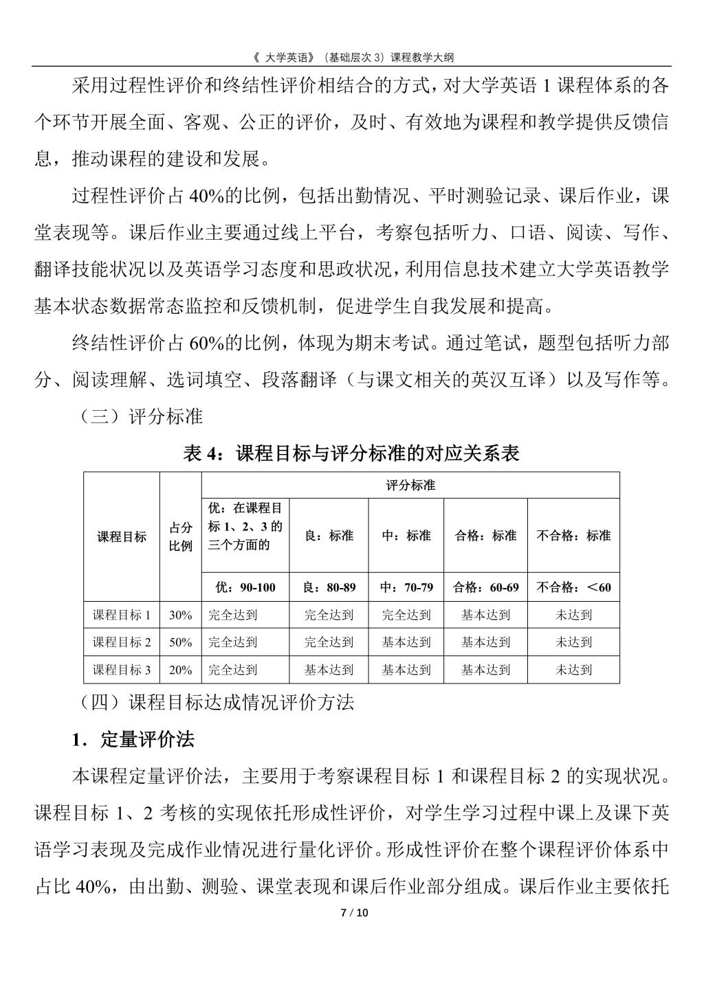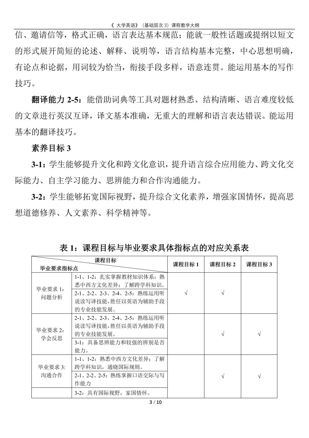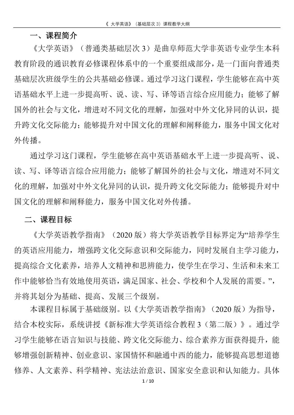 大学英语(普通类基础层次3)课程教学大纲(2022版)