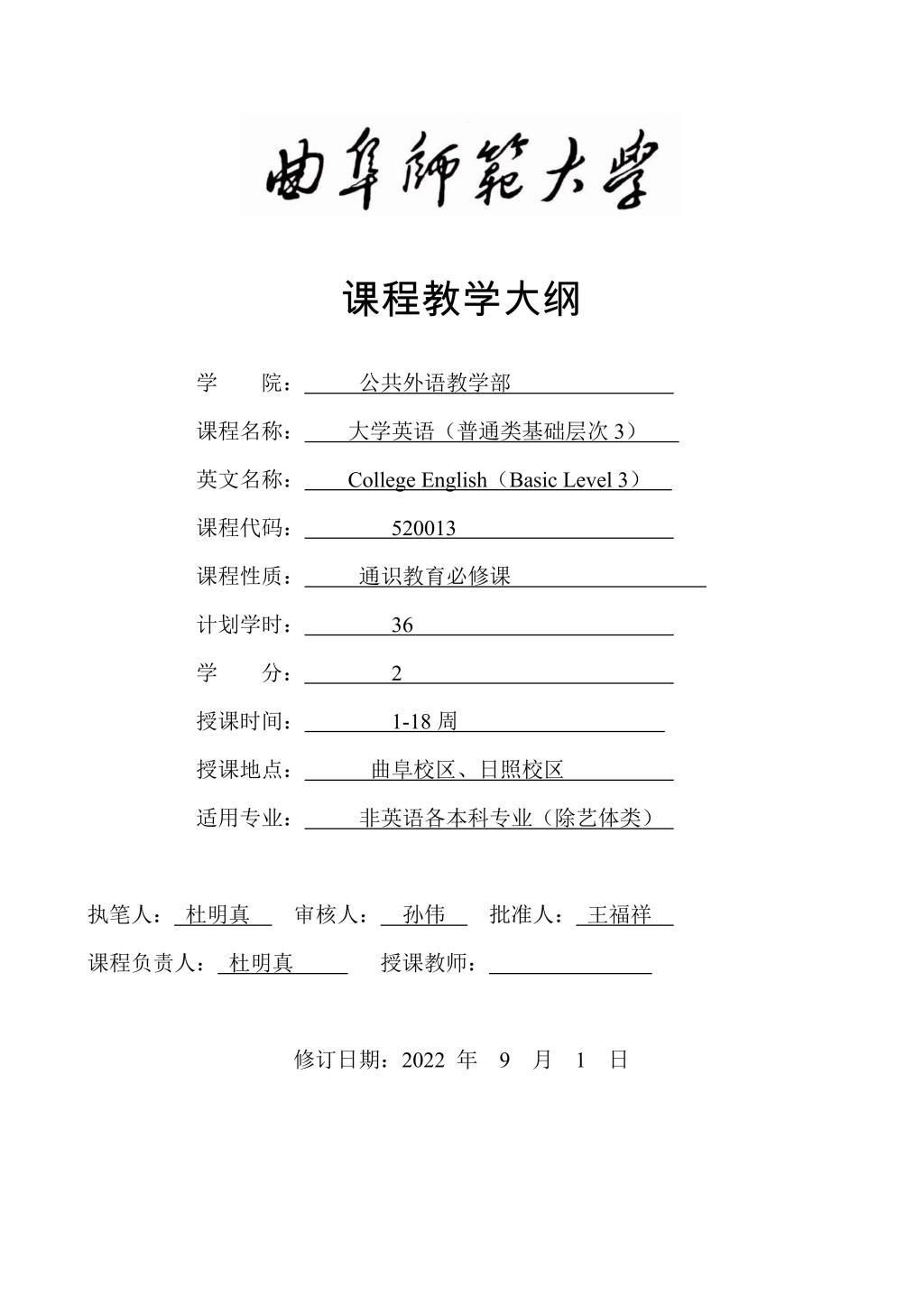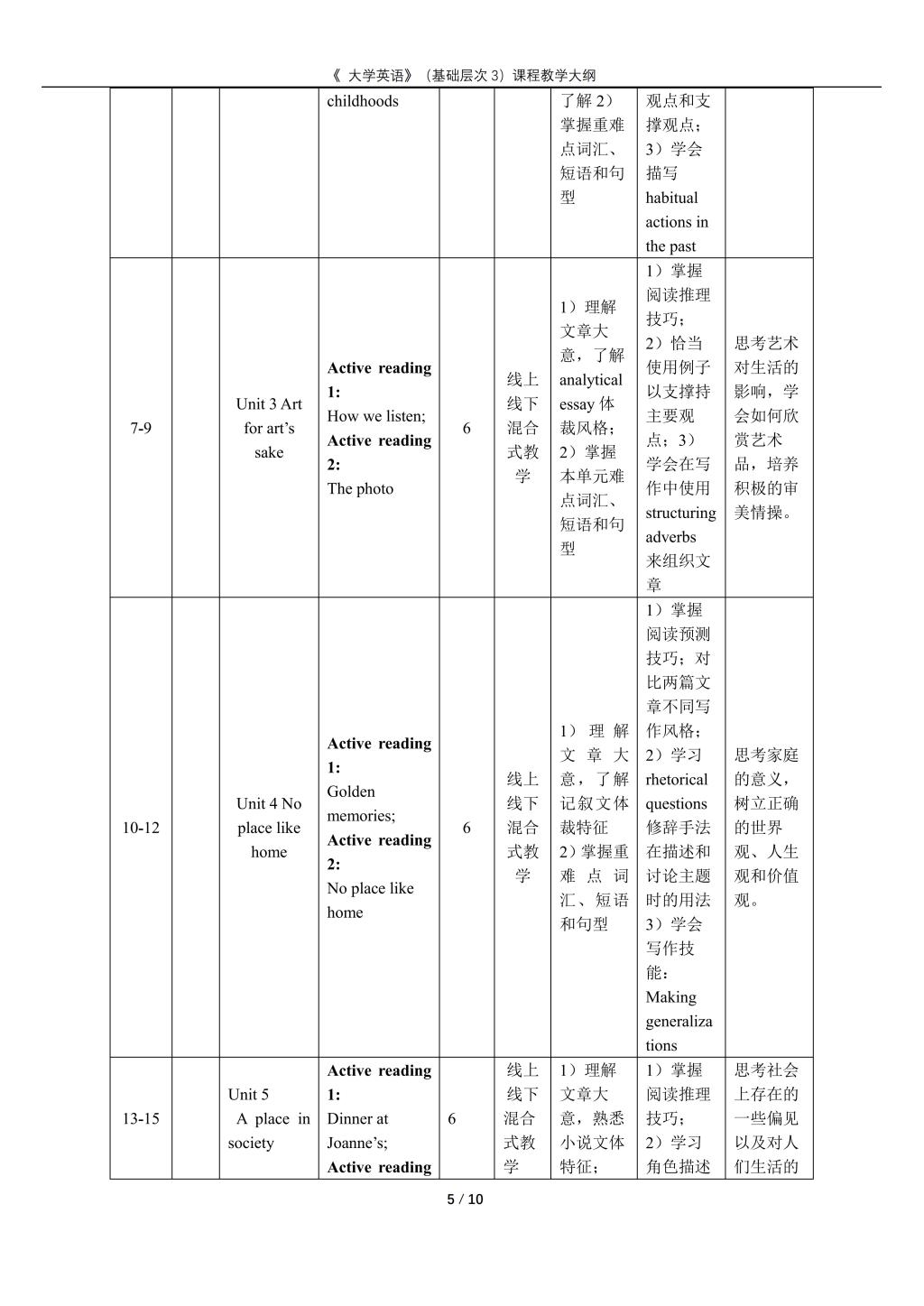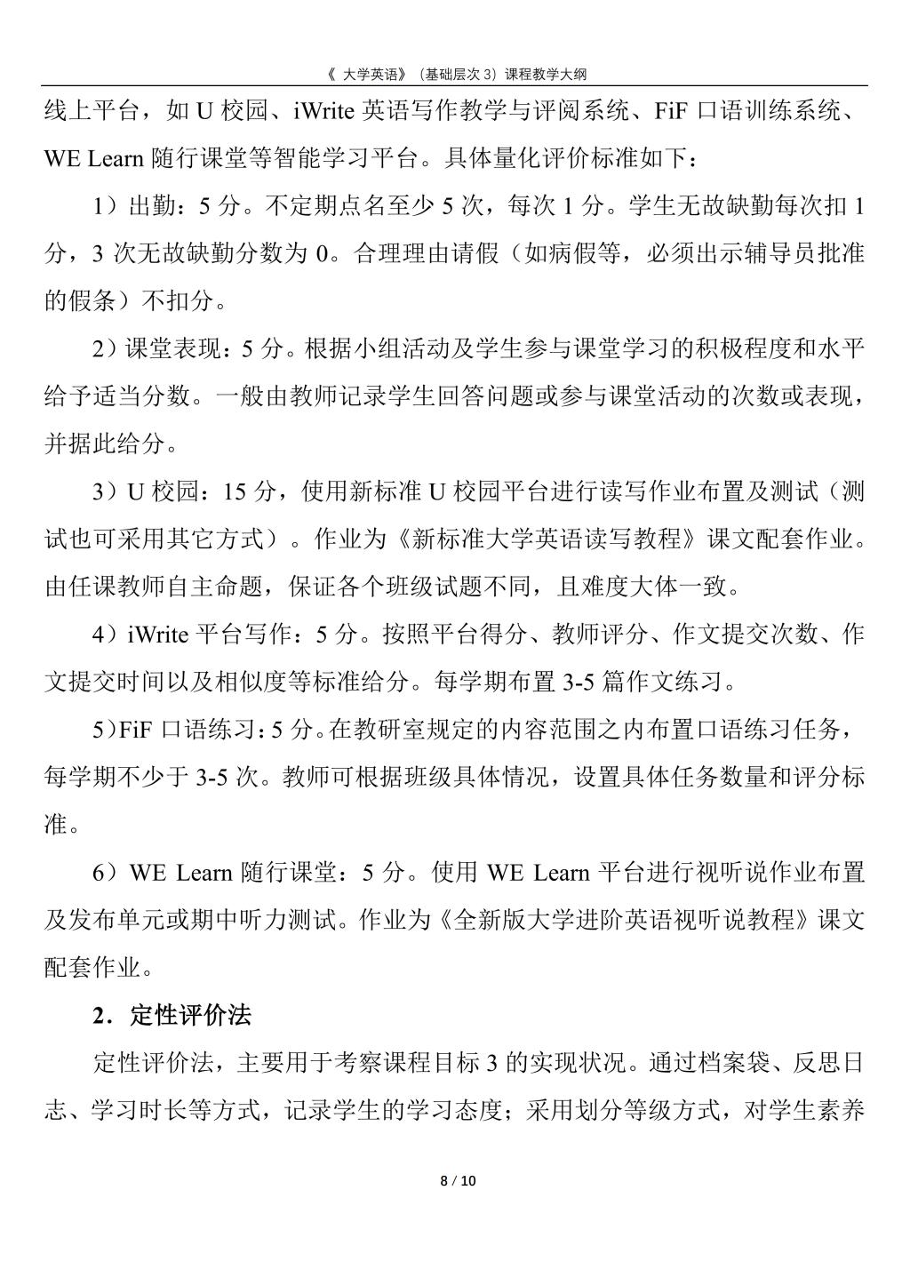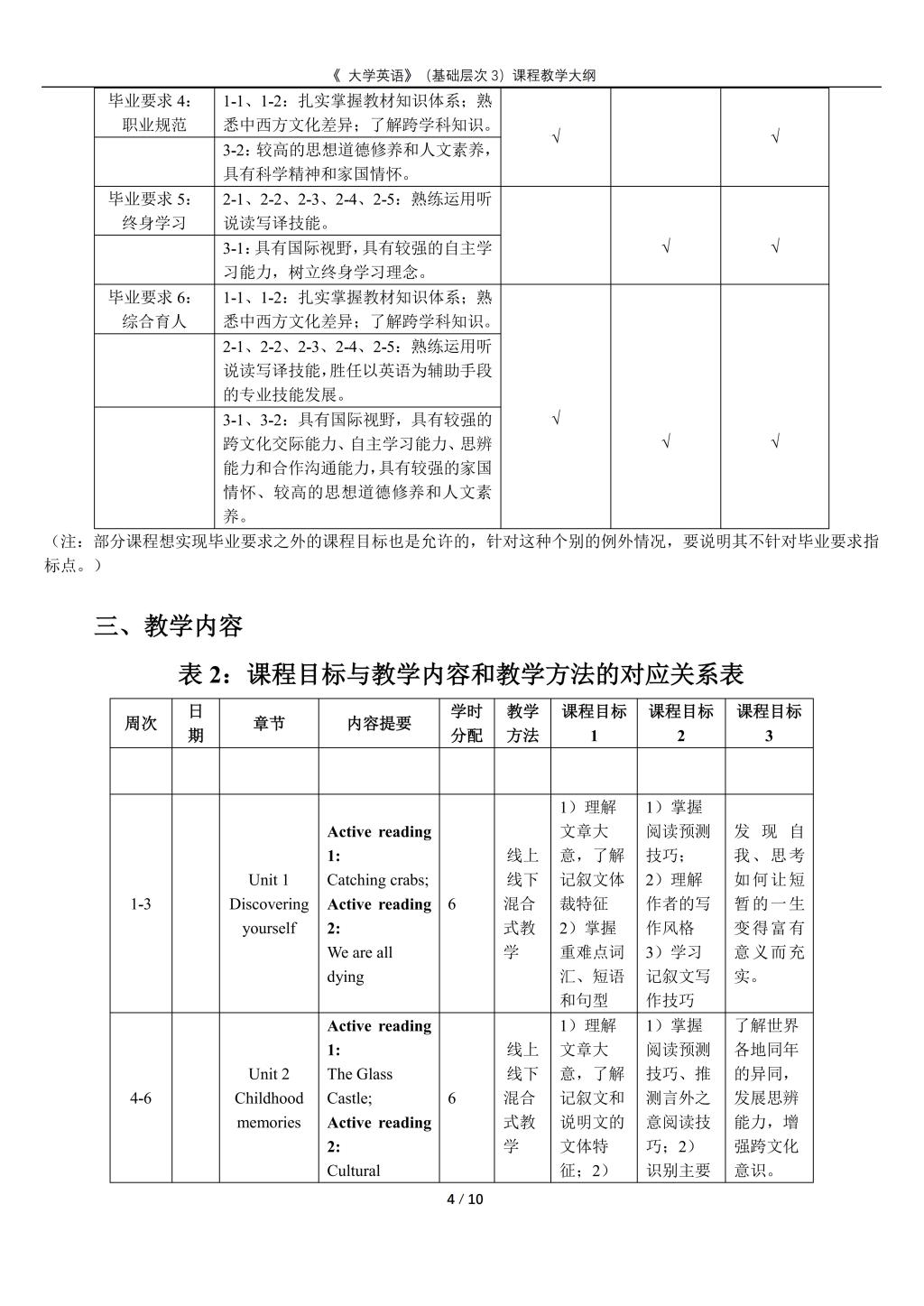 大学英语(普通类基础层次3)课程教学大纲(2022版)