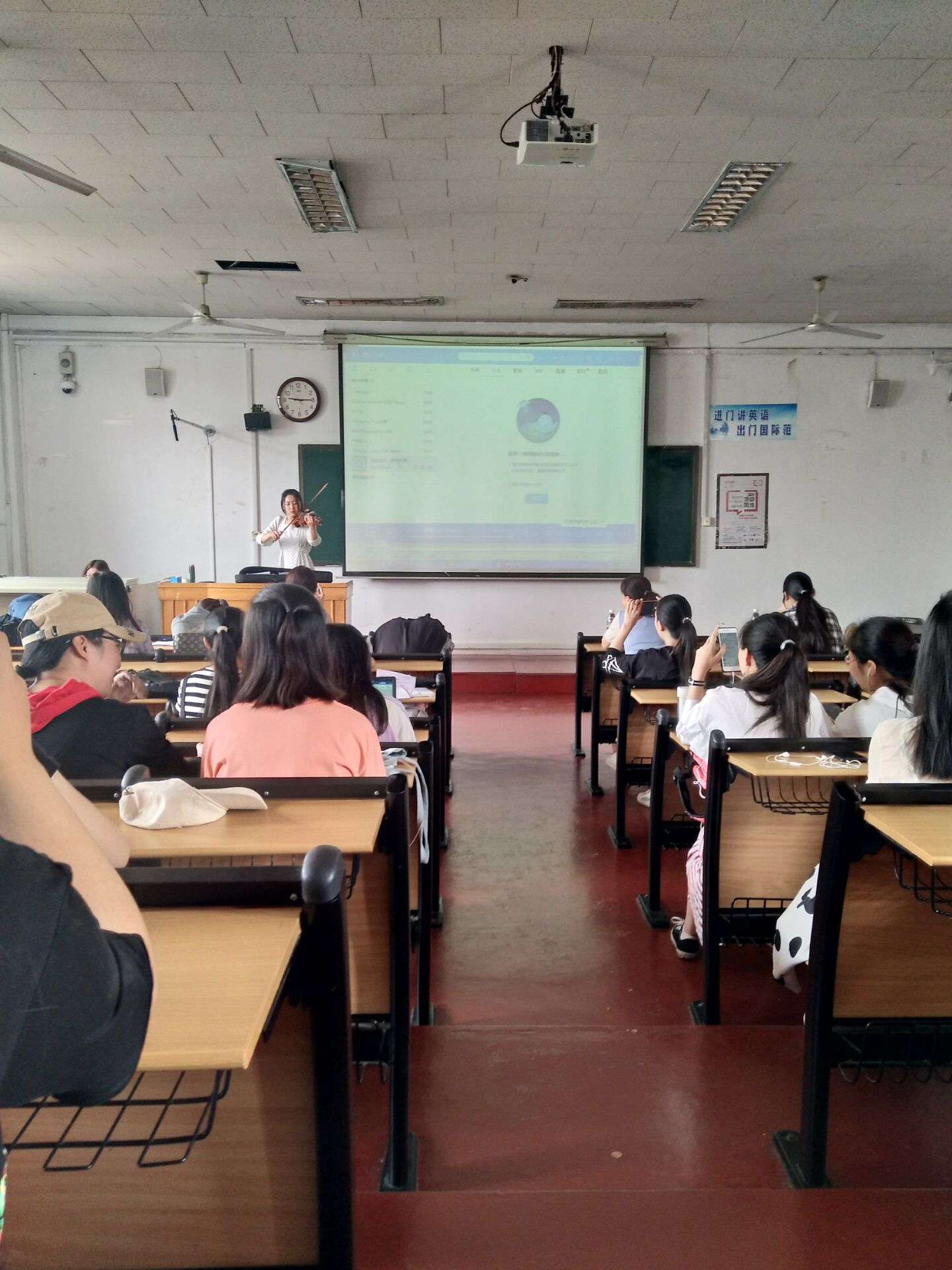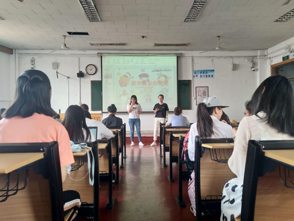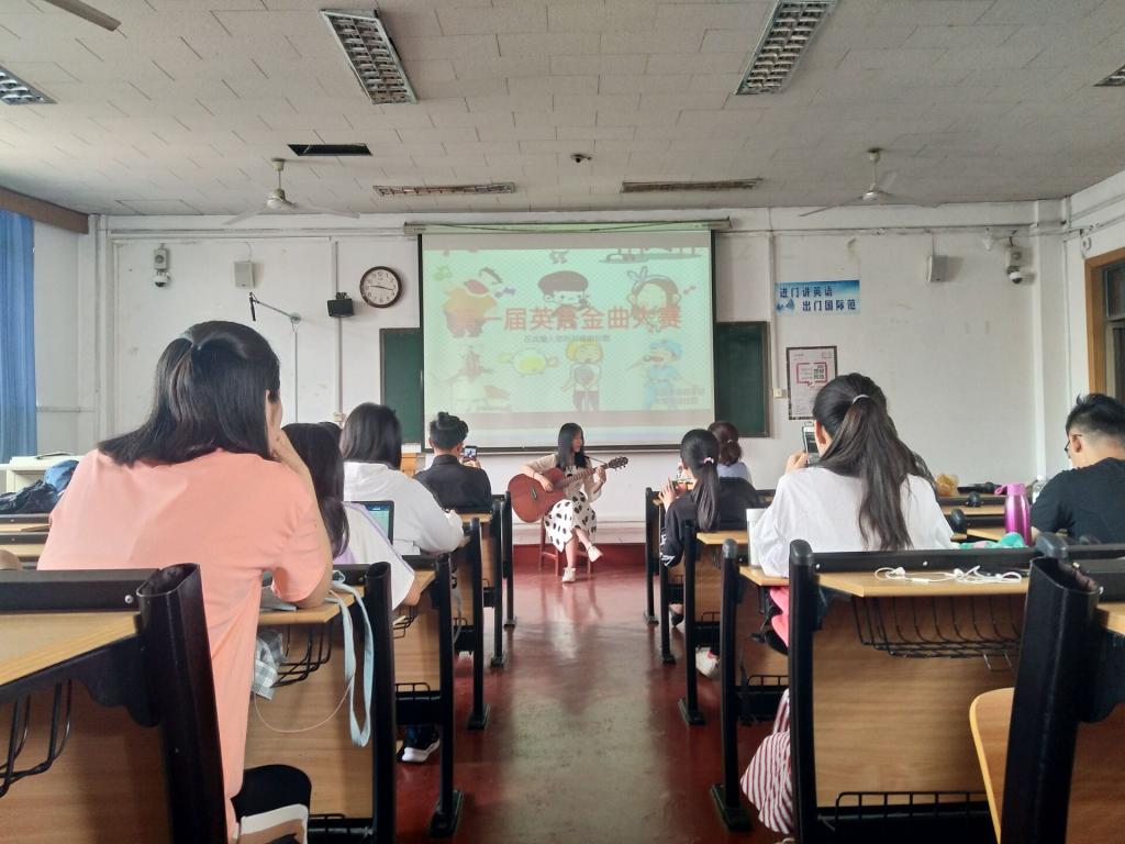 老师指导下,由大学英语社团举办的第一届外语金曲大赛初赛在外院201教室正式开唱。