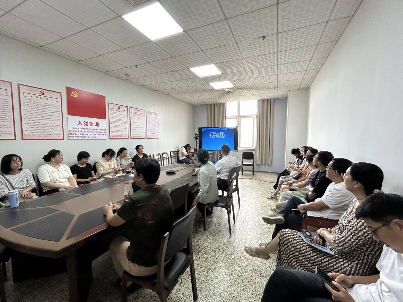 8月31日,斗地主 召开“大学英语混合式教学改革及课程建设推进会”,以提升教学质量与学生综合语言应用能力。课程建设团队负责人聂新艳、杜明真两位老师分别就单位建设完成的四门在线课程进行详细解读,为后续教学实践与课程优化指明方向。